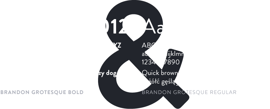 The choice of typeface was one of the most important elements. We always had a warm spot in our hearts for typography. It came down to Brandon Grotesque, which reflects our requirements perfectly. It is solid, geometric, strong and at the same time its structure exhumes warmth, sets an agreeable and playful tone.